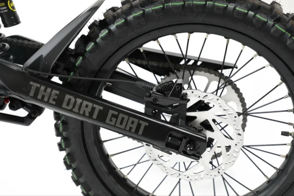 The Dirt Goat 96V is a powerhouse designed for serious riders who crave speed, torque, and endurance. Equipped with a 6,000W mid-drive motor that peaks at 15,000W, this e-dirtbike delivers extreme performance and a top speed of 65 MPH. With a robust 50AH Samsung 96V battery, the Dirt Goat 96V ensures long rides up to 75 miles, making it a reliable companion for off-road enthusiasts and adrenaline seekers alike.