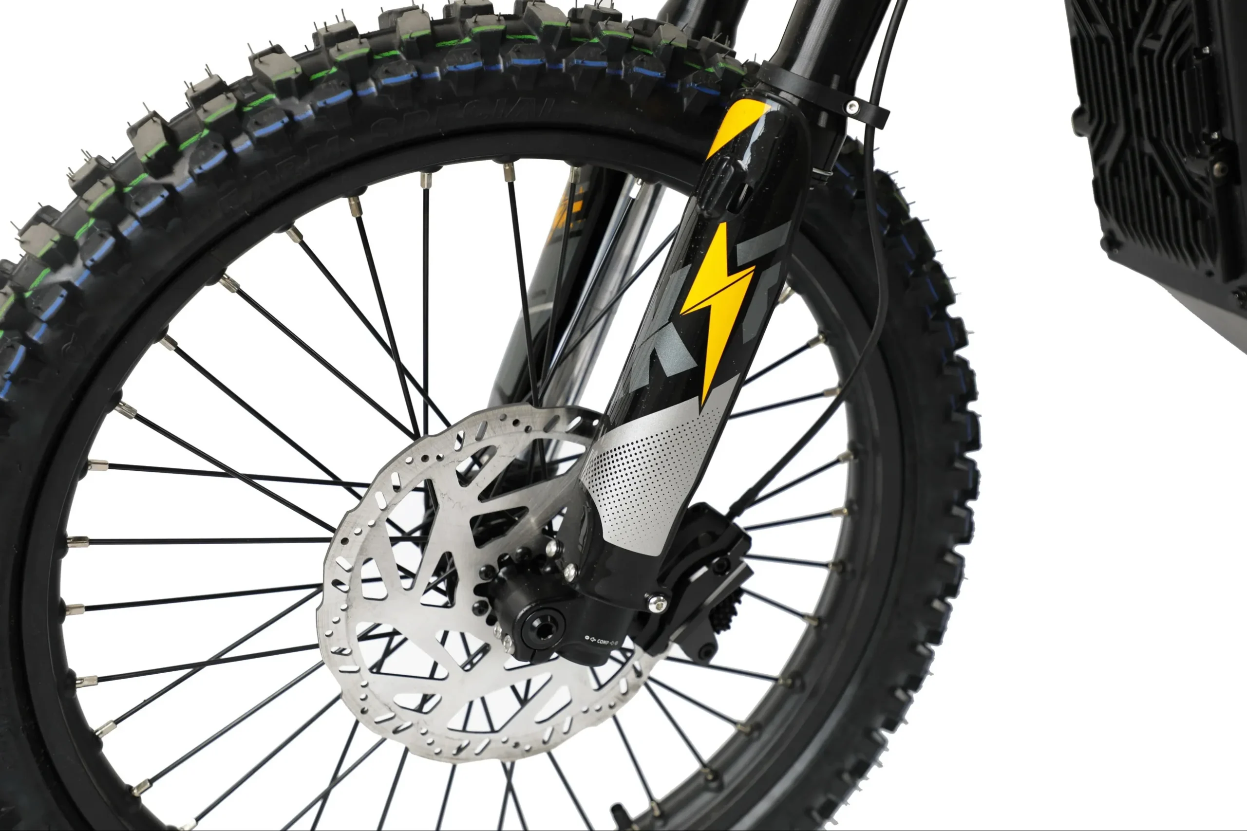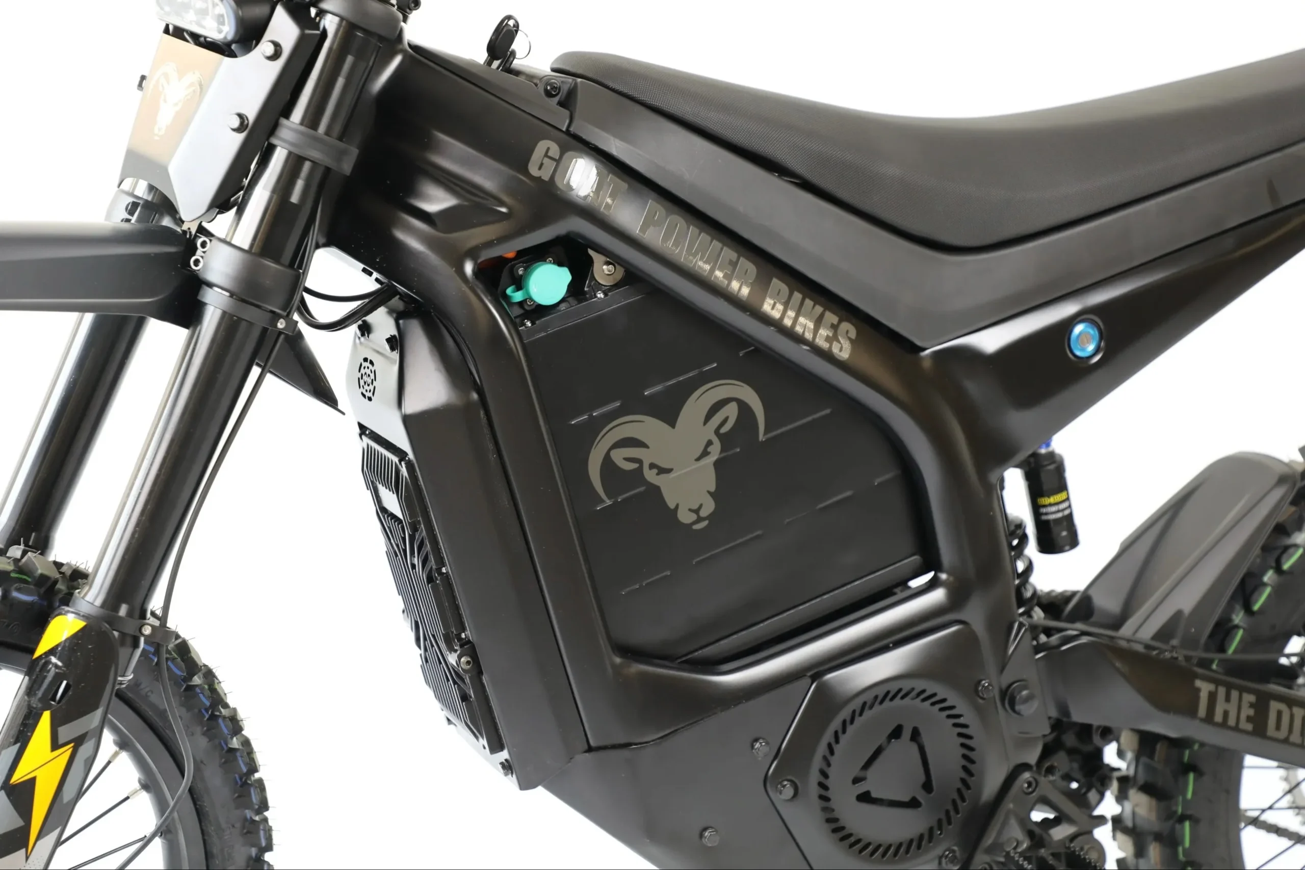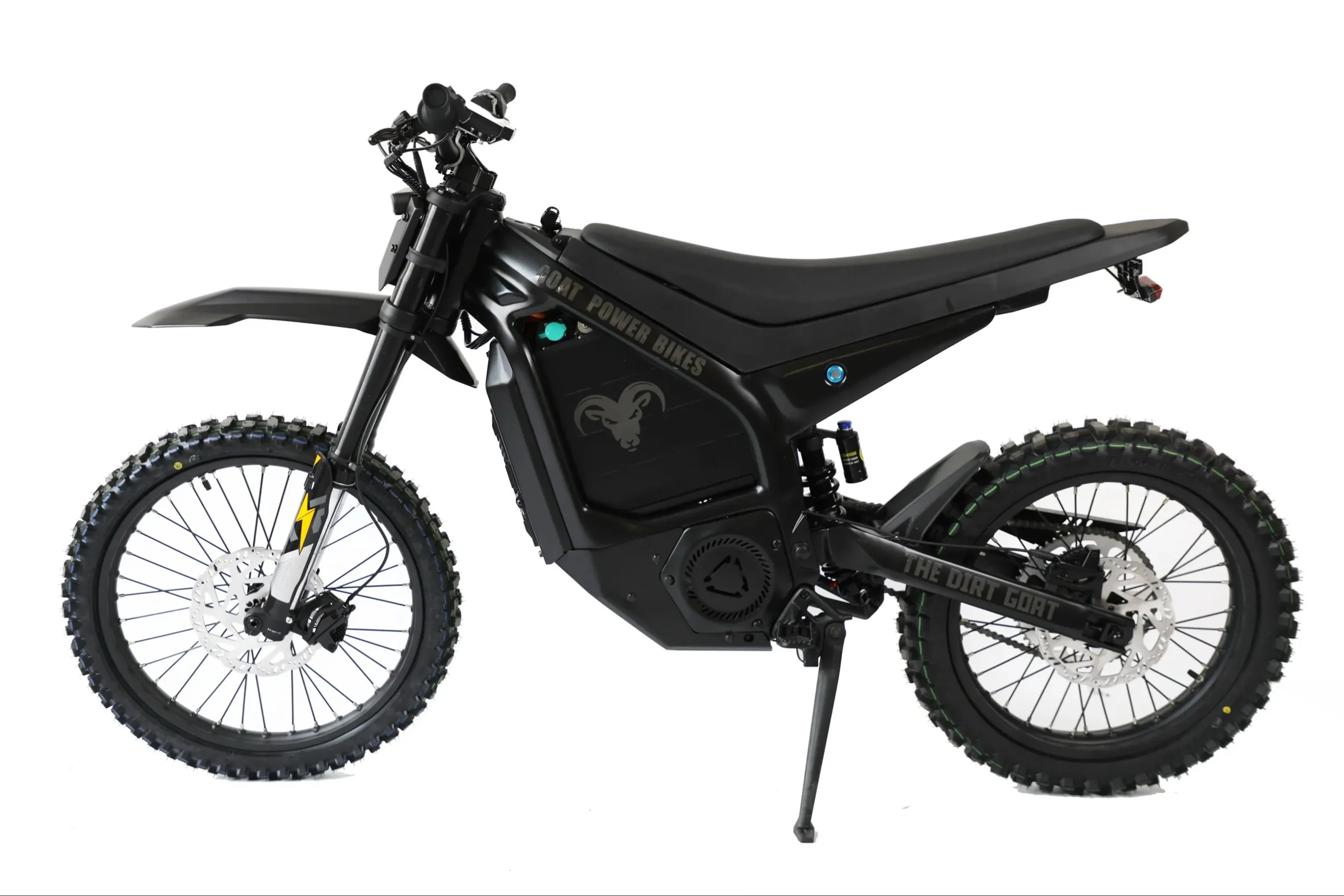 The Dirt Goat 96V is a powerhouse designed for serious riders who crave speed, torque, and endurance. Equipped with a 6,000W mid-drive motor that peaks at 15,000W, this e-dirtbike delivers extreme performance and a top speed of 65 MPH. With a robust 50AH Samsung 96V battery, the Dirt Goat 96V ensures long rides up to 75 miles, making it a reliable companion for off-road enthusiasts and adrenaline seekers alike.